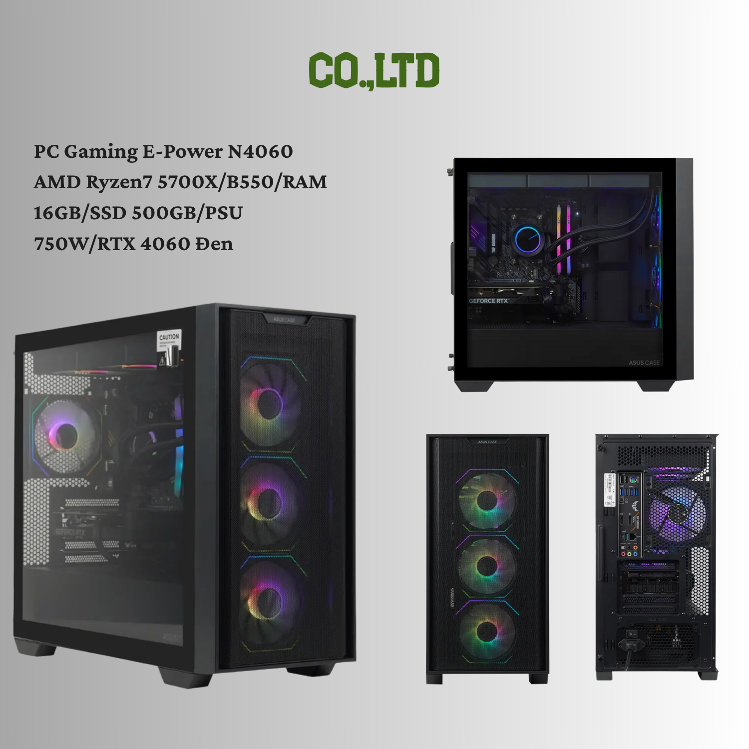 PC Gaming E-Power N4060 AMD Ryzen7 5700X/B550/RAM 16GB/SSD 500GB/PSU 750W/RTX 4060 Đen